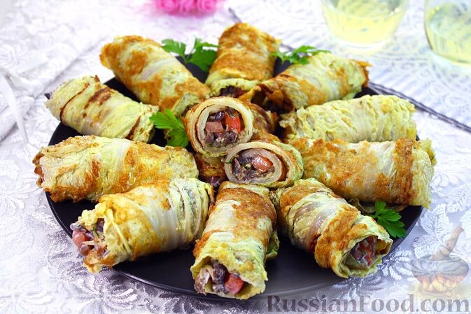 Рулетики из пекинской капусты с грибами и помидорами — отличное решение как для перекуса, так и в качестве основного блюда. Обжаренные листья капусты наполняются грибной начинкой с сыром и сметаной. Готовьте и наслаждайтесь!