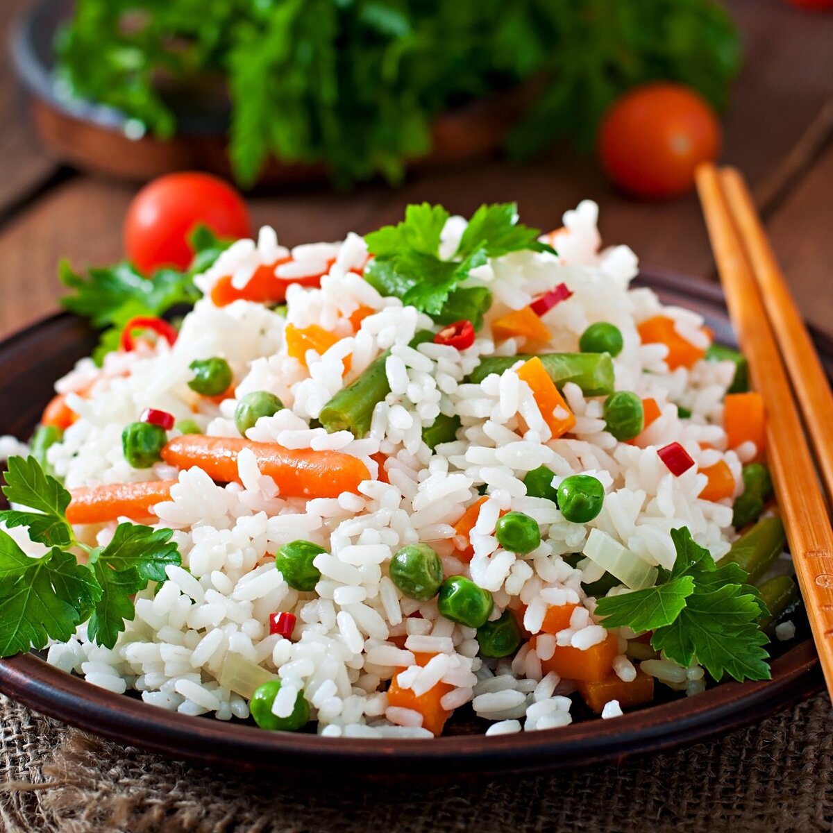 Для достижения чудесного результата можно предварительно обжарить рис. Разогрейте на сковороде растительное масло и добавьте рис. Постоянно помешивая, обжаривайте крупу в течение 3-4 минут. Затем можно смело переходить к варке — рис гарантированно останется рассыпчатым и ароматным.
