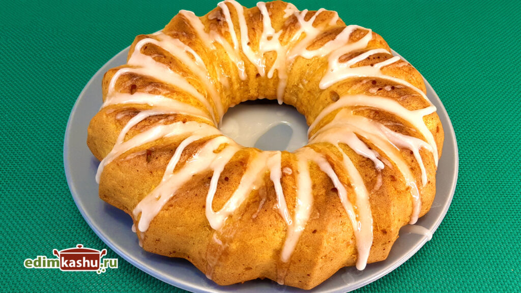 По окончании выпекания остудить пирог в форме, затем аккуратно переложить его на тарелку и украсить сахарной пудрой или глазурью. Пирог идеально сочетается с чаем.