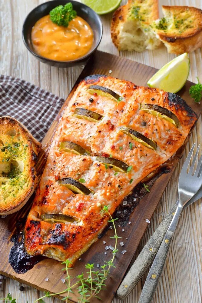 - Лосось (филе на коже) – около 1 кг