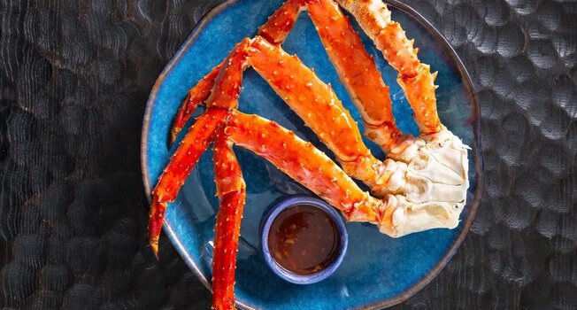 Готовый краб должен быть ярко-алого цвета, а мясо - плотным и белым. Сочетать крабовое мясо лучше с лимоном или острым соусом, например, Sweet Chili. Готовое чесночное масло — тоже отличный выбор для подачи.
