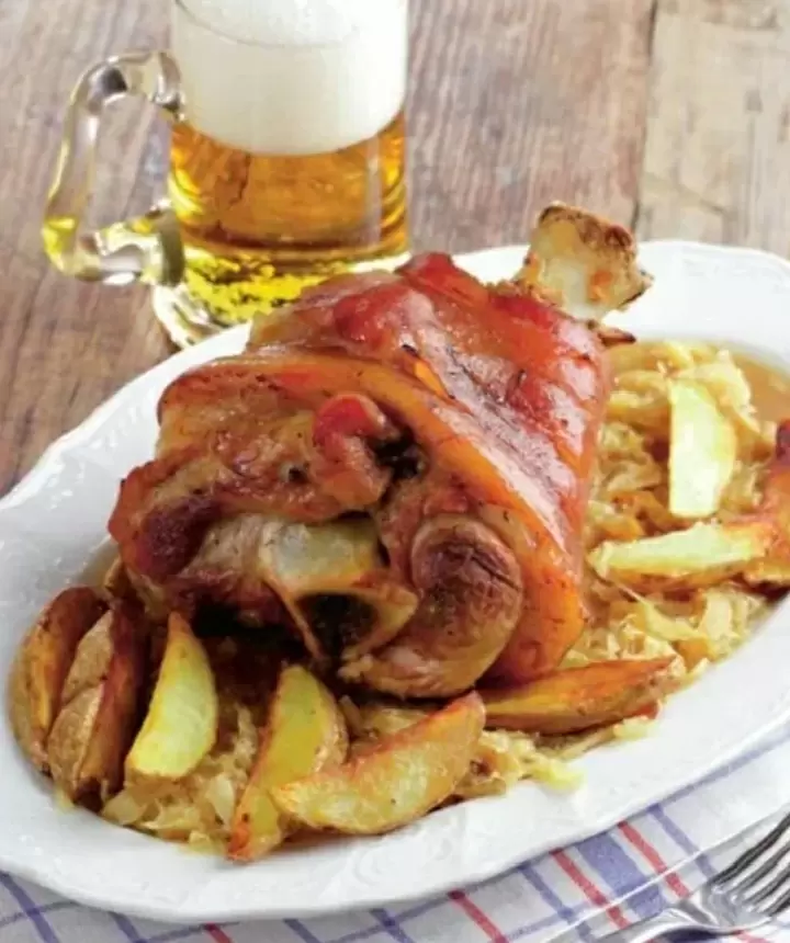 - Ингредиенты: свиная рулька, тёмное пиво (портёр, стаут или тёмный эль) 1–1,5 л, 2–3 луковицы, 1–2 моркови, 5–7 зубчиков чеснока, лавровый лист, чёрный и душистый перец горошком, гвоздика, тимьян, мед или тёмный сахар, горчица, растительное масло, соль, свежемолотый перец.