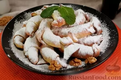 - Словацкие рогалики с орехами: Эти румяные изделия из дрожжевого теста хрустят на зубах и радуют насыщенным ореховым вкусом. Начинка из грецких орехов, обжаренных с сахаром, делает их просто незабываемыми.
