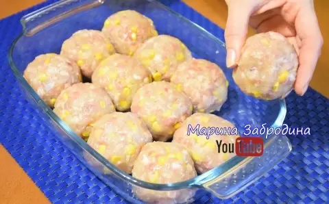 Первым делом мясо и очищенную луковицу нужно пропустить через мясорубку, чтобы получился однородный фарш. Затем добавляется соль, перец и консервированная кукуруза с яйцом. Вся масса тщательно перемешивается вручную.