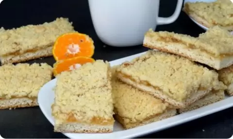 Для крошки смешать 90 г масла, 50 г сахара и 100 г муки, и равномерно посыпать пирог. Выпекать при 180 градусах около 25-30 минут. Дать остыть, нарезать на куски и подавать к чаю. Лучшие сочетания с кислой начинкой, например, лимоном или вишней, сделают его настоящим деликатесом.