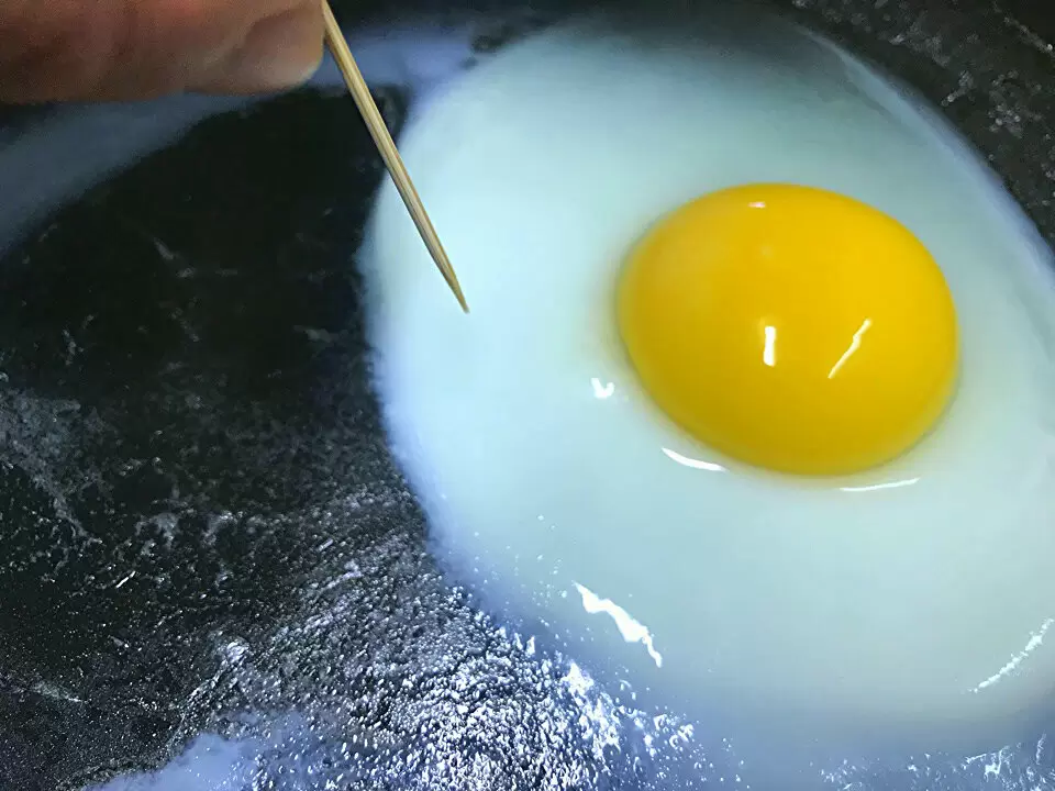 Не забудьте про белок! Он имеет разную консистенцию в разных частях яйца, поэтому рекомендуется делать небольшие проколы в белке. Это позволяет ему готовиться равномерно, а для этого удобно использовать зубочистку — особенно, если сковорода с антипригарным покрытием.