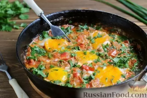 Для любителей грузинской кухни великолепным выбором станет яичница по-грузински с ароматной кинзой и помидорами, известная под названием "чирбули". Это сытное и красочное блюдо идеально подходит для тех, кто хочет разнообразить утренний рацион.