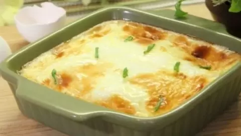 3. Запекание: Перелейте яично-молочную смесь в подготовленную форму, заполняя её на 2/3. Поставьте в разогретую духовку.