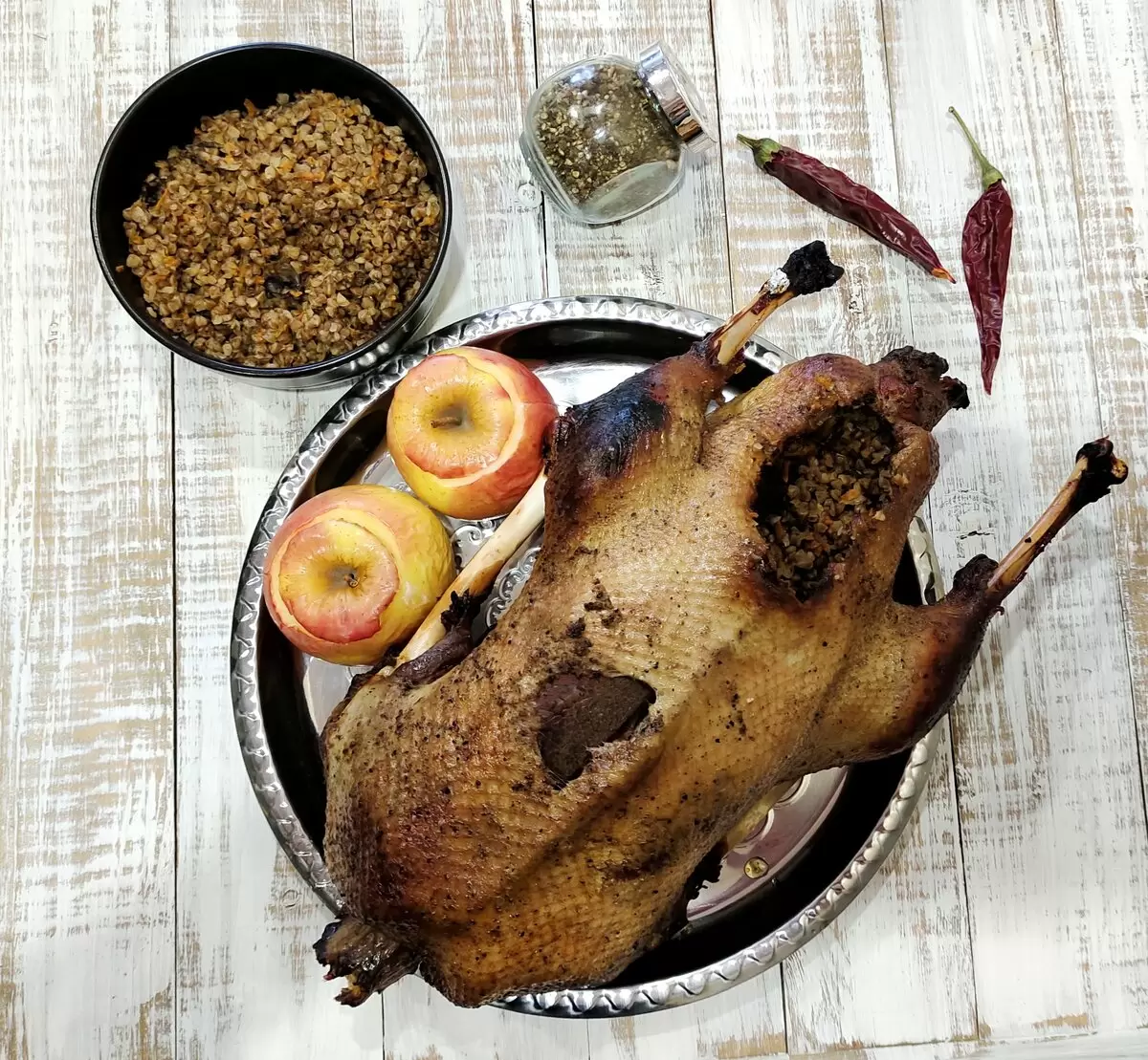 Какой же Новый год или Рождество обходится без звездного блюда на столе? Представляется неподражаемый гусь, фаршированный гречкой и грибами, в обрамлении медово-пряного маринада. Этот деликатес способен удивить даже самых взыскательных гурманов.