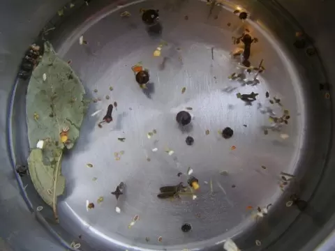 Для начала сварите рассол: доведите воду с добавленными специями до кипения. После трех минут варки, закрыв крышкой, дайте настояться. Затем добавьте остальные ингредиенты, кроме меда, и снова доведите до кипения.