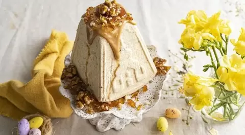 Эта творожная Пасха с вареной сгущенкой и орехами станет звездой любого пасхального стола, оставляя послевкусие праздника в каждом кусочке. Она порадует как сладкоежек, так и тех, кто ценит насыщенные текстуры и ароматы.