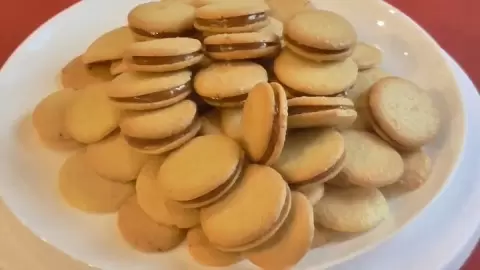 Духовка разогревается до 200 градусов, и печенье выпекается в течение 15 минут. Как только печенье готово, его можно начать прослаивать вареной сгущенкой.