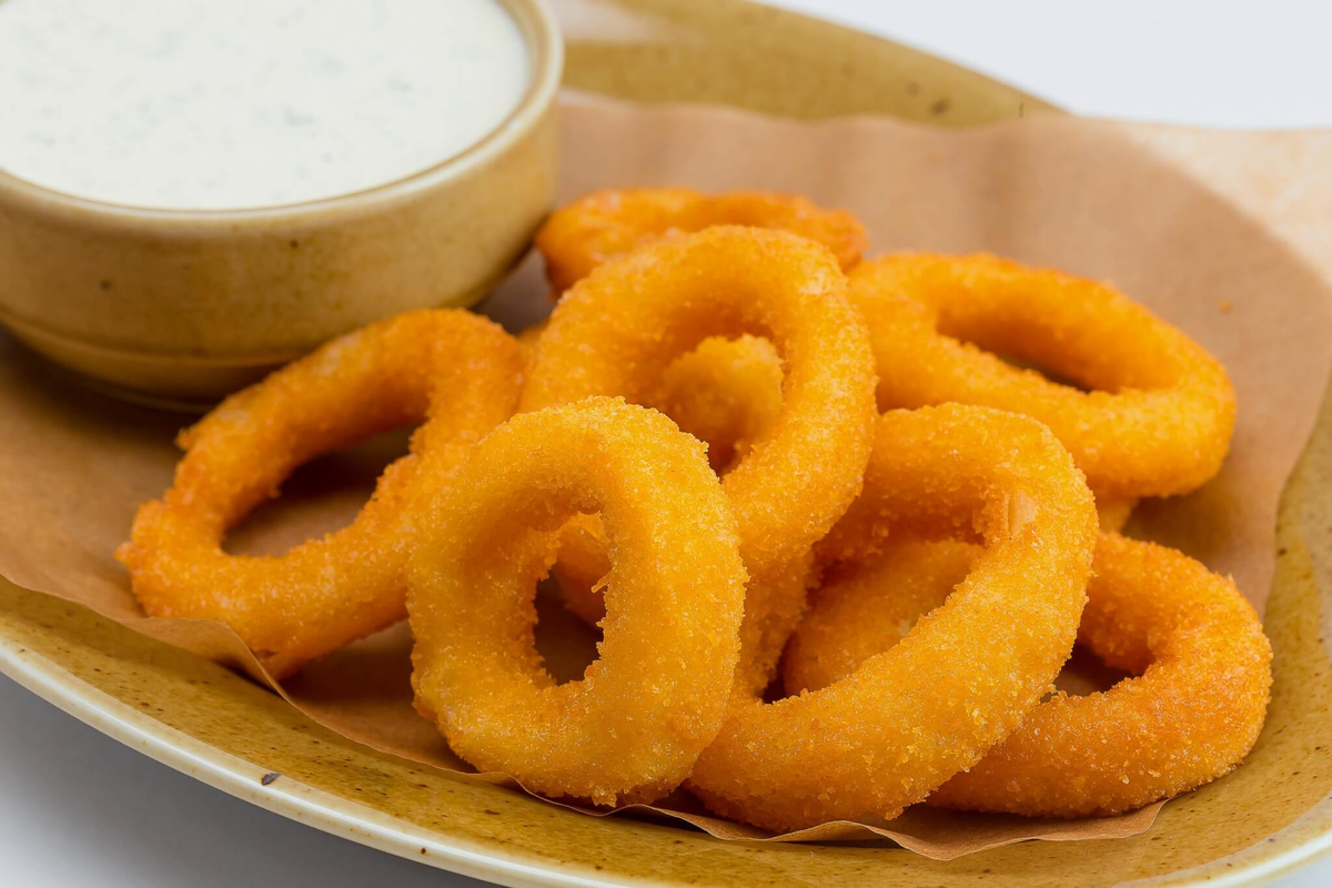 Готовые кольца выложить на бумажные салфетки, чтобы избавиться от лишнего масла. Подавайте их горячими с дольками лимона и любимым соусом — от классического тартар до острых томатных соусов.