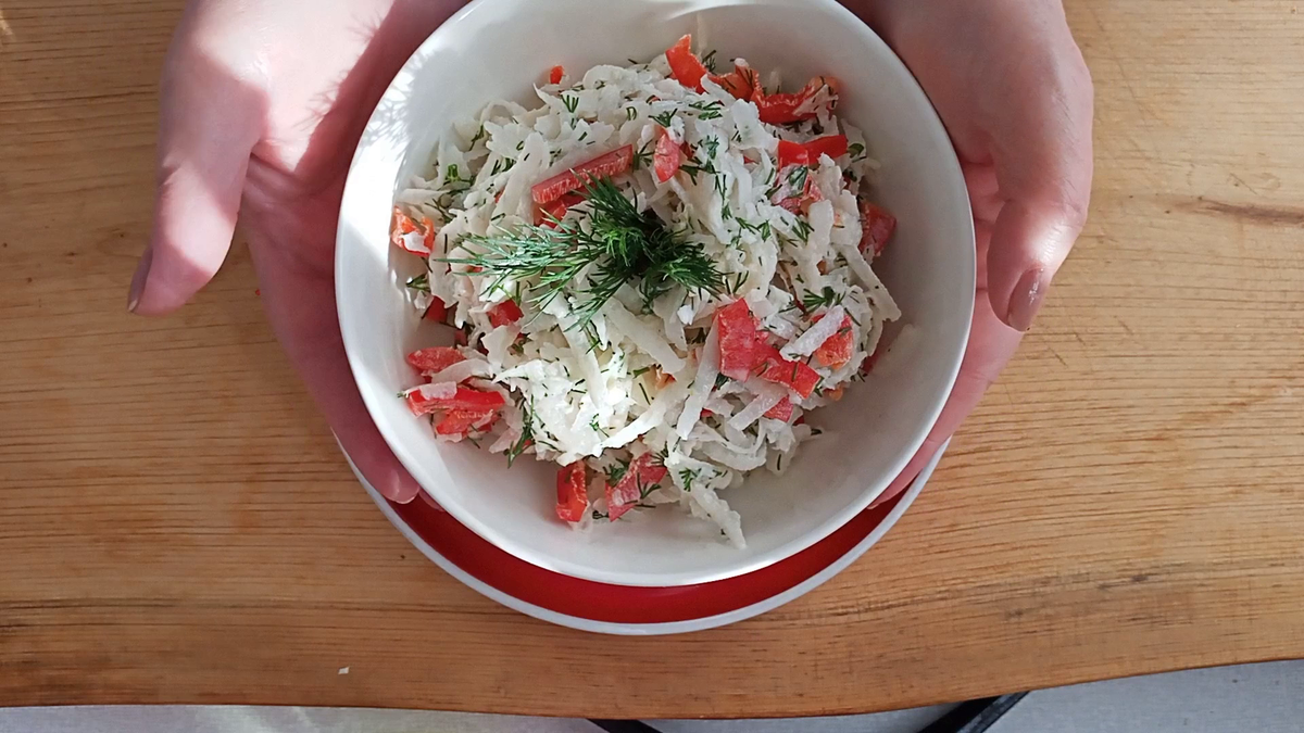 С приходом осени на прилавках магазинов появляется дайкон – большая белая редиска, известная своими полезными свойствами. Этот корнеплод идеально подходит для приготовления разнообразных блюд, и сегодня речь пойдет о простом, но невероятно вкусном салате.