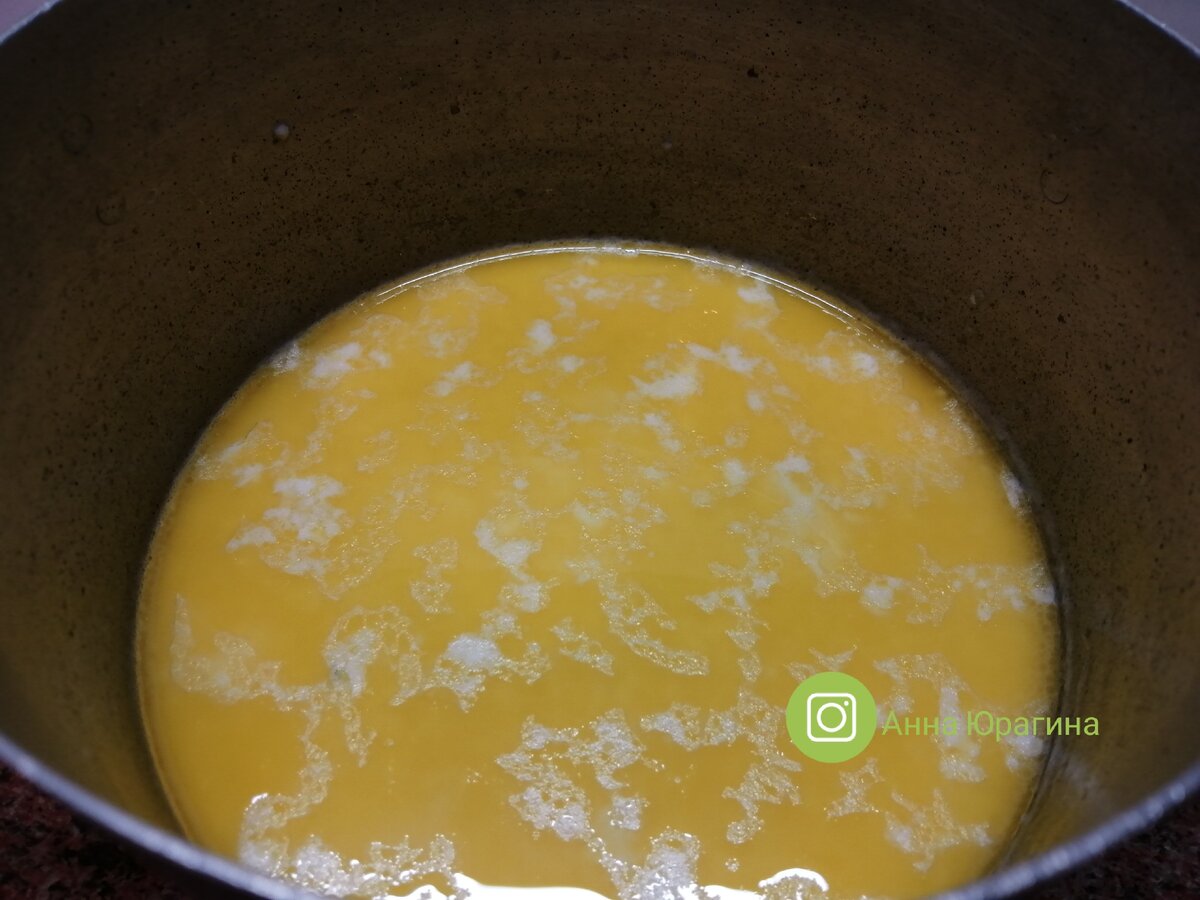 Нагрейте молоко, добавьте в него маргарин и дайте немного остыть.