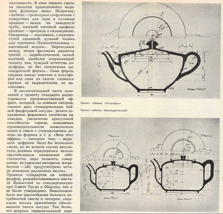 - Проекты рациональных форм посуды — работы о чайниках и чашках 1920-х годов;