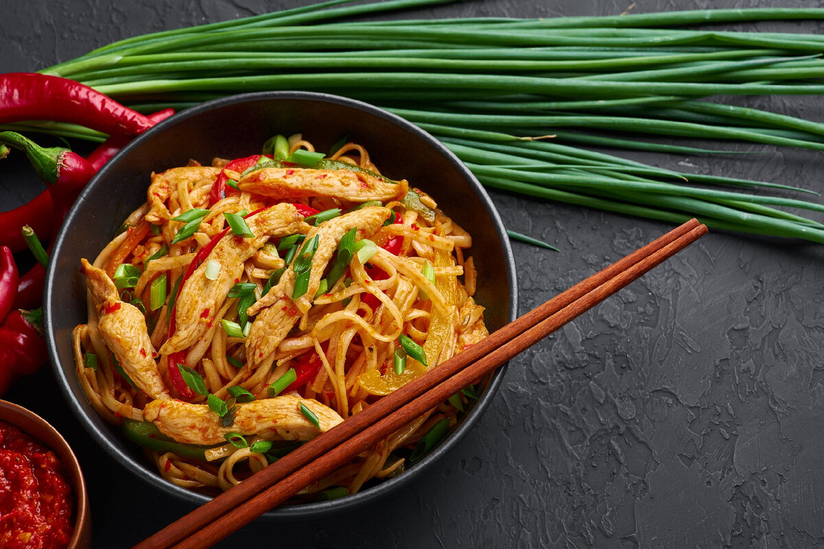 Лапша удон с курицей и овощами — это идеальный пример популярного азиатского фаст-фуда. Приготовить блюдо можно очень быстро, а его состав позволяет экспериментировать. Во-первых, выбор овощей не ограничен: используйте любые, лучше всего сезонные. Во-вторых, соусы — возможность для кулинарного творчества: традиционно лапшу дополняют нежным сливочным соусом или соусом терияки, который легко сделать самостоятельно. Так вы получите абсолютно натуральное блюдо.