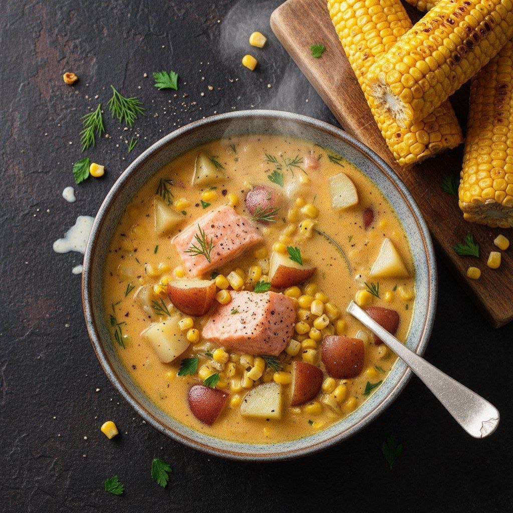 Пробуйте и наслаждайтесь восхитительным супом с кетой и кукурузой, наполняющим вашу кухню радушием!