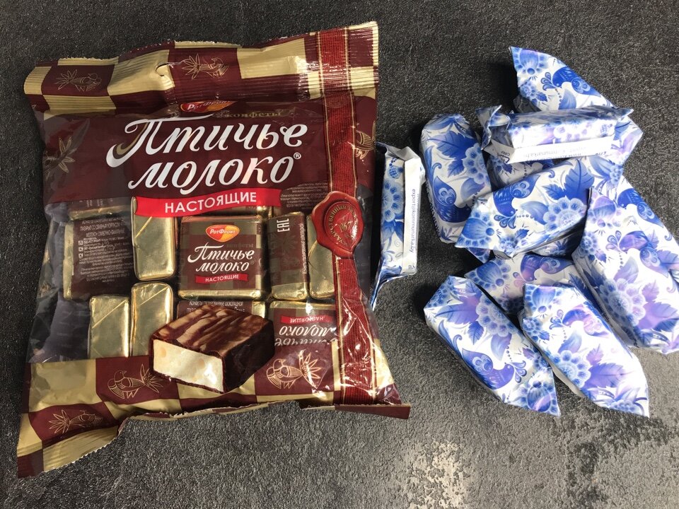 Недавно возникло желание вновь порадоваться «Птичьему молоку», поэтому было решено протестировать конфеты от двух популярных производителей: российского «РотФронт» и белорусской фабрики «Коммунарка». Для чистоты эксперимента был выбран одинаковый вид конфет.