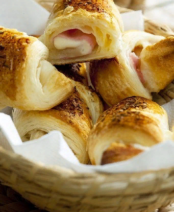 Начните с размораживания слоеного теста. Раскатайте его в прямоугольный пласт, затем нарежьте на равные треугольники.Подготовьте начинку: нарежьте ветчину и лук маленькими кубиками. Обжарьте ветчину на сливочном масле до легкой подрумяненности, после чего добавьте лук. Жарьте до мягкости, остудите, приправьте перцем, добавьте порубленную петрушку и натертый сыр.На каждый треугольник теста положите подготовленную начинку, смазывая края желтком и взбитыми сливками. Затем аккуратно скатайте в рогалики и выложите на противень, предварительно смоченный водой.Разогрейте духовку до 225 градусов и поместите в нее противень с рогаликами. Выпекайте в течение 20 минут до золотистой корочки.Эти рогалики станут отличным дополнением к любому застолью и гарантированно поднимут настроение! Делитесь любимым рецептом со своими друзьями!