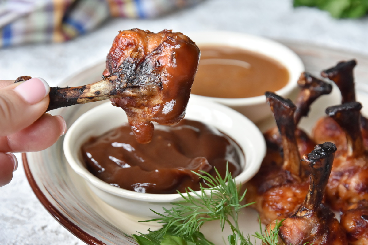 Уникальная форма крылышек, напоминающая конфеты на палочке, особенно понравится детям. Они будут удобно держать их за косточку, а руки останутся чистыми. Для создания более привлекательного вида косточки можно обернуть небольшими кусочками фольги.