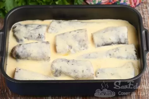 В глубокой миске разбейте пять куриных яиц, добавьте четыре столовые ложки сметаны, немного соли и перца. Хорошо перемешайте и залейте этой смесью рыбу. Поставьте форму в предварительно разогретую духовку при 180 градусах на 35-40 минут. Когда рыба зарумянится, её можно доставать. Аромат будет невероятным, а яичная масса придаст рыбе особую нежность и сочность.