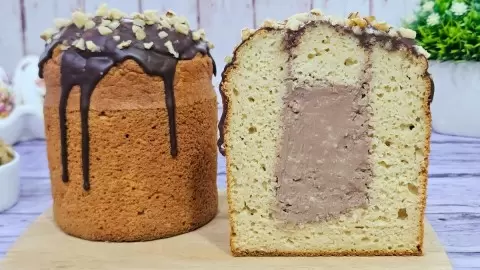Этот кулич на кефире без дрожжей и сахара готовится без использования пшеничной муки, что делает его отличным вариантом для здорового питания. Сытное шоколадное начинение придает изюминку этому лакомству.