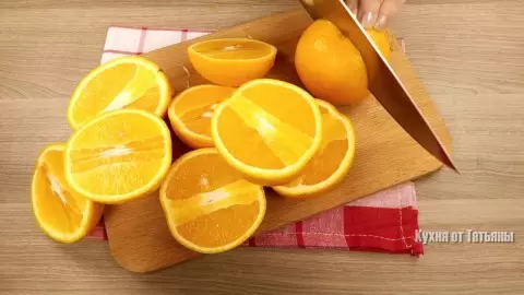 Сначала необходимо подготовить сок. Для этого берется 5 средних апельсинов. Их разрезают, выжимают и процеживают через мелкое сито. В результате получается примерно 500 миллилитров свежего сока.