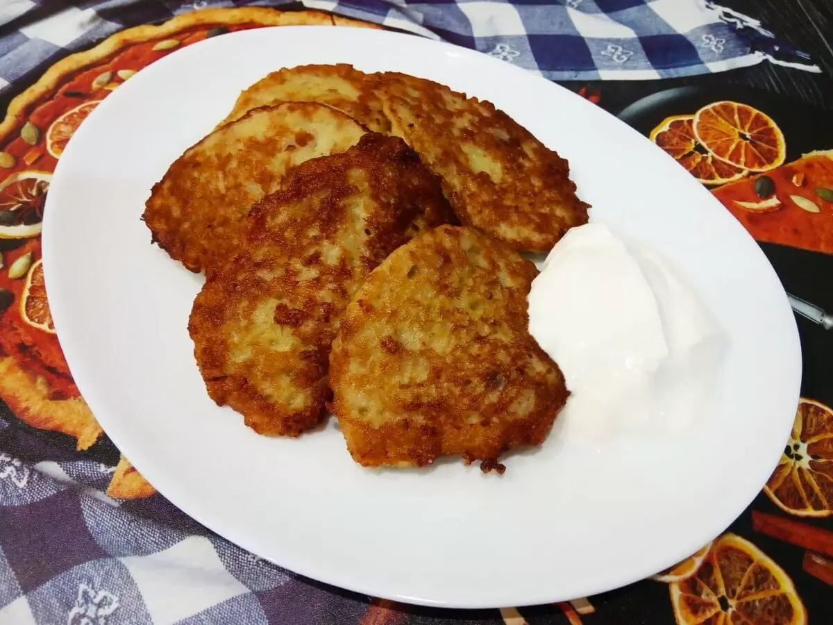 5. Оладьи жарят до золотистой корочки с обеих сторон, затем накрывают крышкой и на медленном огне доводят до готовности.