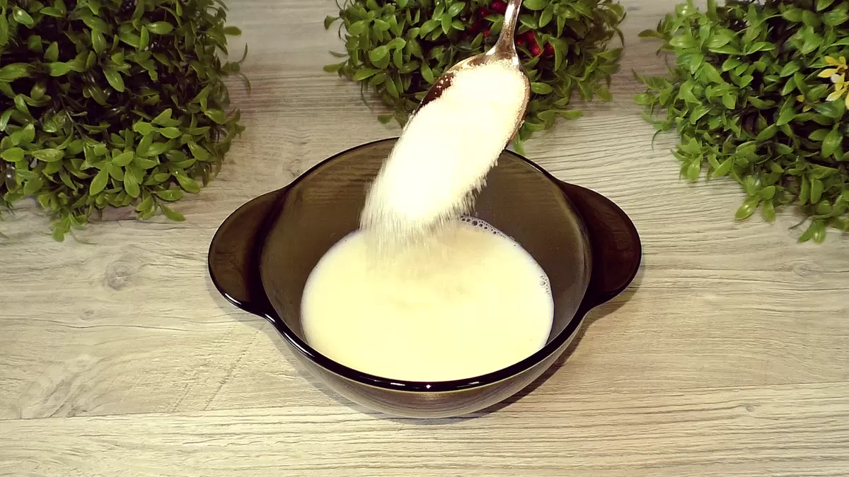 Первым шагом является подготовка молока. Оно должно быть слегка теплым, и в него необходимо добавить одну столовую ложку сахара. Затем в молоко всыпают дрожжи, тщательно перемешивают и дают настояться пару минут.