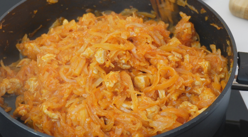 Для начала, необходимо подготовить все ингредиенты. Капусту стоит нарезать тонкими полосками, а лук и куриную грудку — небольшими кубиками. Далее, в глубокой сковороде разогреть растительное масло и обжарить лук до прозрачности, после чего добавить куриную грудку. Примерно через пару минут можно добавить немного соли и чёрного перца. Теперь пришло время добавить капусту и влить воду.