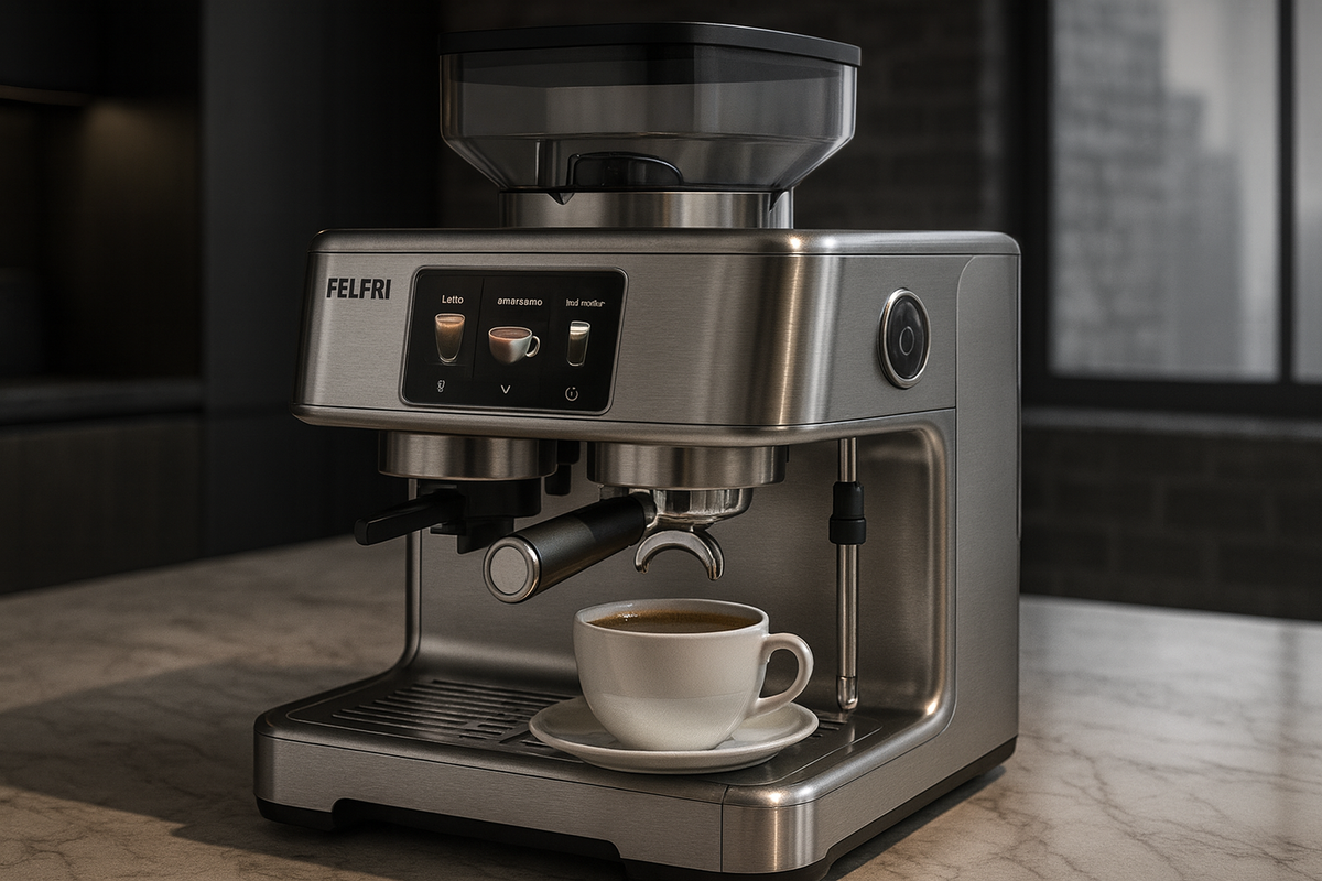 Kофемашина FELFRI FCM-005 предлагает профессиональные функции прямо у вас дома. С давлением в 20 бар и двумя термоблоками она обеспечивает стабильную температуру на протяжении всего процесса. А благодаря 25 ступеням помола можно настроить чашку так, как вам нравится – более сладкую или крепкую. К тому же итальянская помпа ULKA и корпус из нержавеющей стали и алюминия гарантируют долговечность и надежность.